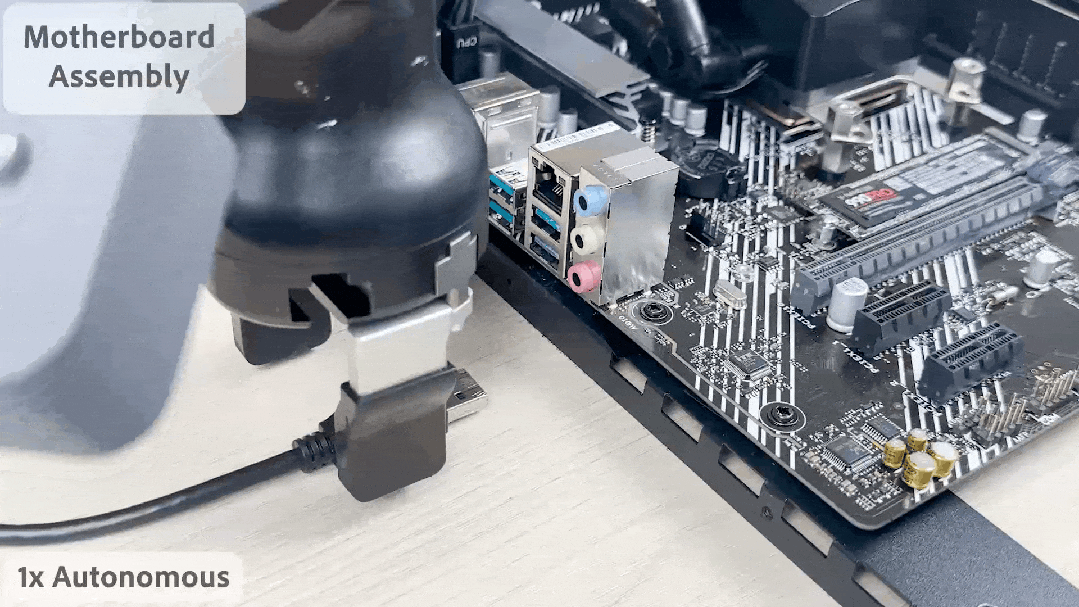 這些任務包括組裝家具、顛勺煎蛋、鞭打積木、插入 U 盤等操作,即使在人為干擾的情況下,機器人也依舊能夠穩(wěn)定、靈活地完成任務。