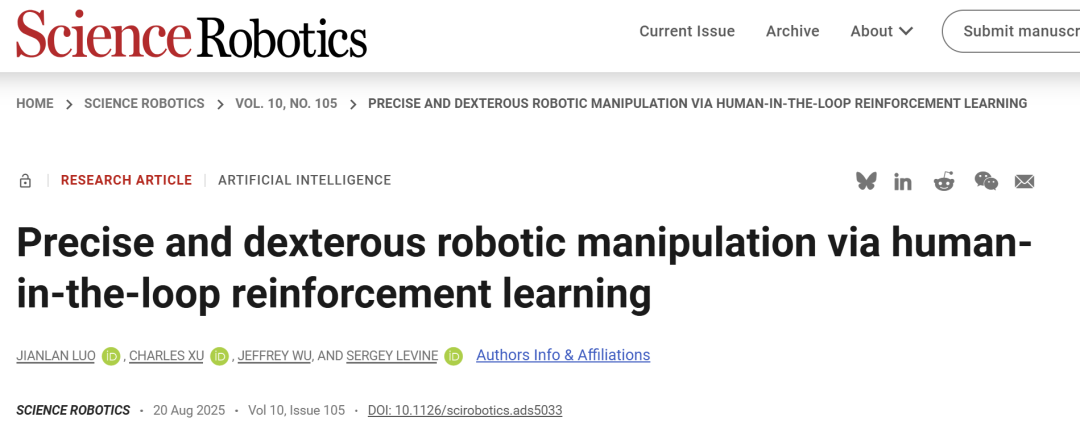 論文標題:Precise and Dexterous Robotic Manipulation via Human-in-the-Loop Reinforcement Learning